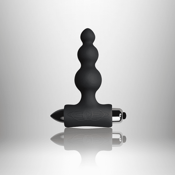 Rocks Off Petite Sensations Bubbles Black Butt Plug. Discover the gentle approach to experiencing anal play with Petite Sensations Bubbles: a small first time anal toy. Feel 7 functions flow from this velvety soft, slim anal vibrator. A T-shaped base vibrates and pulsates on your highly sensitive area for extremely satisfying sensations. Float on the light touch of this slim first time anal toy to guide you through your new sexual adventure. Feel your body tremble with pleasure as you insert each bubble of this small anal vibrator, and embrace the rising arousal as their girth widens. A firm T-shaped base will vibrate and pulsate on your highly sensitive area as it firmly fits between your cheeks, while its strong vibrations surge through each bubble to deliver overwhelming heights of pleasure. Velvety soft, ultra smooth body safe silicone eases every push towards you experiencing ultimate arousal. Once inserted choose one of the 7 vibration and pulsation settings to give you a new side to pure satisfaction. Bubbles is 100% waterproof and fully submersible so you can feel the ripples of pleasure float through you in the bath, shower or hot tub. For an exciting journey to anal pleasure that heightens your stimulation with every step, choose Petite Sensations Bubbles. Tip: relax fully and find a calm state to make insertion go more smoothly. Also, liberally apply a quality water based anal lube to the toy and your intimate areas to go easier on your body. Features: petite size ideal for beginner anal play. Velvety soft, ultra smooth body safe silicone. Pinpointed, targeted vibrations. 3 vibration speeds and 4 patterns for varying sensations. 100% waterproof and fully submersible. Battery included.
