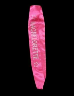 Celebrate the bachelorette with this black satin sash with Bachelorette and stars in clear crystal stones. Help her celebrate her final fling before the ring with this sleek black sash that sparkles with a little bling.