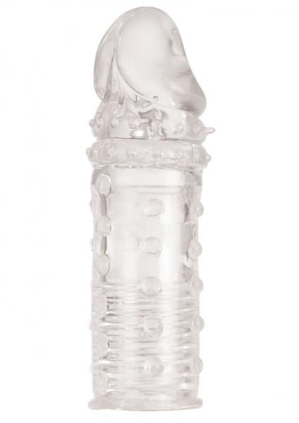 Size does matter! Adds a full 2 inches to length Soft, sensual, ribbed extension with an accentuated penis head Comfortable and discreet Unscented Thermoplastic Rubber TPR One size fits all  trim to fit 6.25 inches by 1.5 inches The shaft is about .35 inch thick.