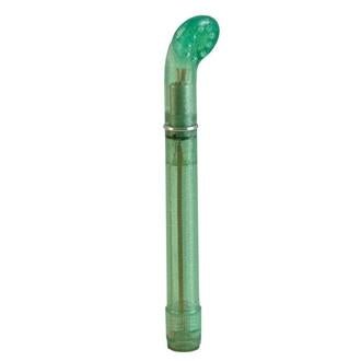 Clit Exciter Green Vibrator. Uniquely contoured, shimmering, glittered, powerful, waterproof, multiple-speed massagers. The Clit Exciter is designed to be held upside down to cover the clitoris with stimulating nubs. Made using phthalate free, non-toxic materials: ABS plastic. Vibrator measures 6.5 inches long by 1 inch wide. Bulk weight 1.9 ounces. Vibrating sex toy requires 2 AAA batteries, not included. Do not leave batteries in the vibrator between uses. A water based lubricant is recommended. Always clean before and after use. Category: For Women, Vibrator, Vibrators. Clit Exciter is a registered trademark for California Exotic Novelties. Sex toys and sexual wellness