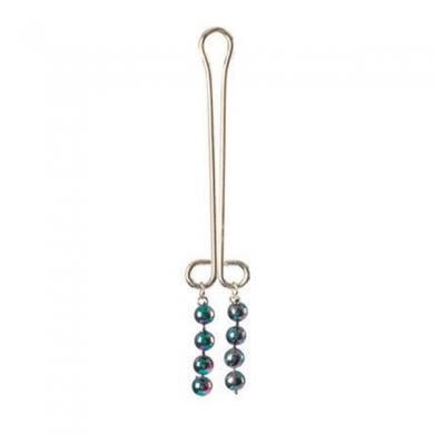 Cleopatra Collection Clitoral Jewelry Pearl Metallic Beads. Non-piercing clitoral jewelry is designed to remain in place without inflicting pain. This item is a type of jewelry used to add to a woman's sex appeal. This is not a torture device. Non-tarnishing, nickel free body jewelry for women. Safe and pure for body and pleasure. Made using phthalate free, non-toxic materials ABS beads, Steel clip. Clitoral clip measures 4.25 inches long. Bulk weight 1.1 ounces. Category: For Women, Attire & Adornments, Jewelry. Cleopatra Collection Clitoral Jewelry Beads Silver is a registered trademark for California Exotic Novelties. Sex toys and sexual wellness.