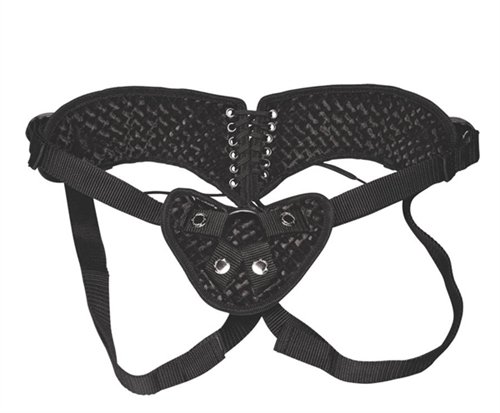 Give your partner the pleasure they need with the Diamond Velvet Strap-On Corset. Features a comfortable secure velvet harness 4-way adjustable straps to fit hips up to 60-inches and a perfectly placed bullet vibe pocket for endless clitoral stimulation. This harness can accommodate any dildo with a flared base and includes 2 rubber holder rings.