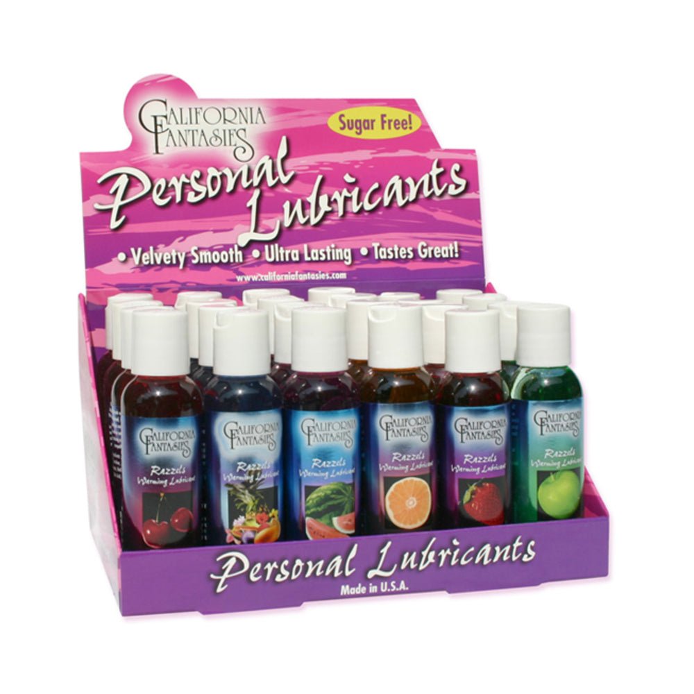 Razzels Flavored Warming Lubricants Counter Display (24 2 Fl Oz Bottles Assorted Flavors)